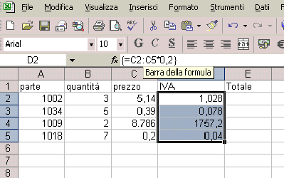 stessa, per esempio =C2:C5*0,2 come nell'esempio sotto. Al termine dell'inserimento della formula, invece di